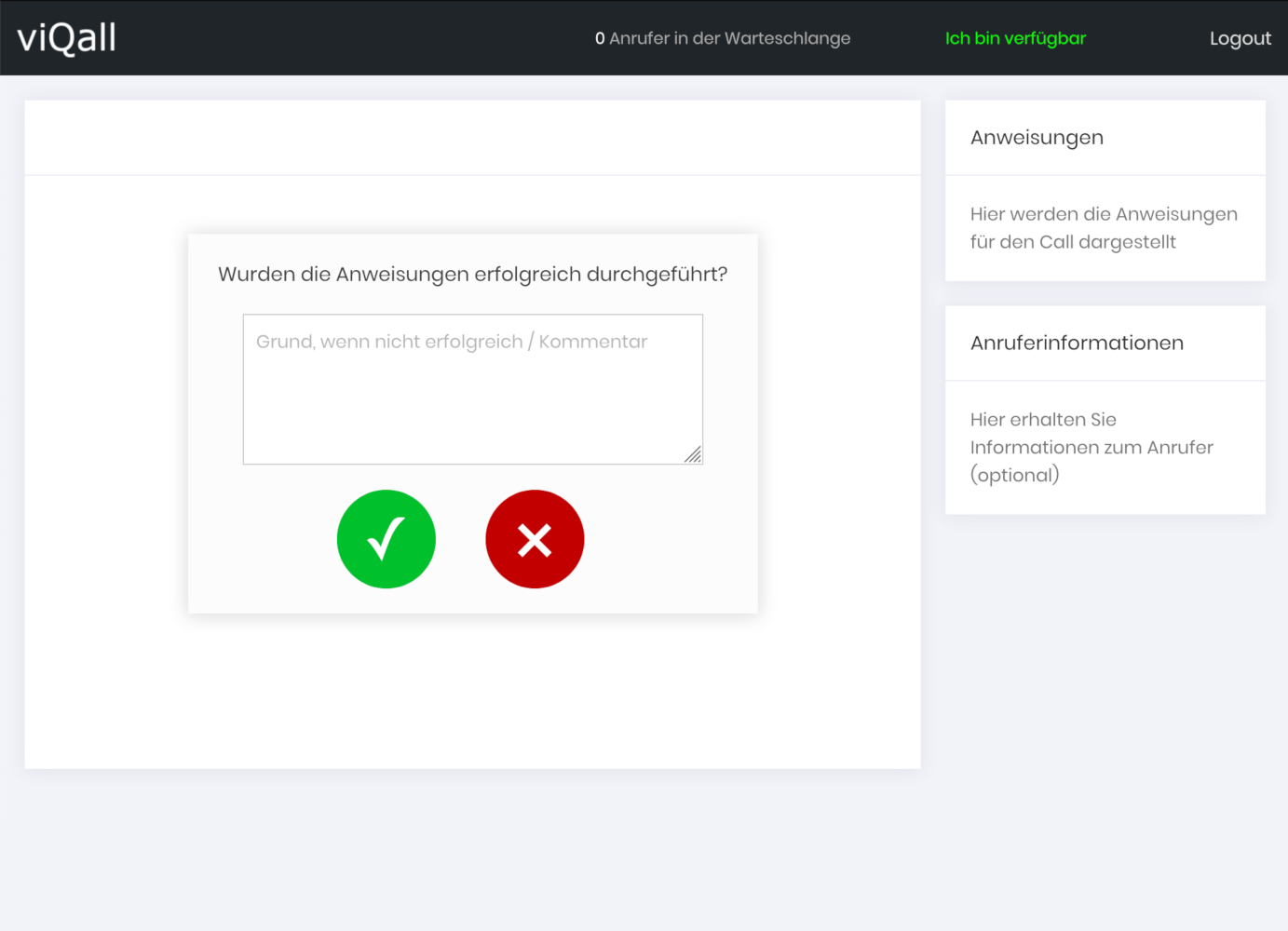 Der Agent kann sich bei viQall einloggen und anschließend Anrufe entgegennehmen.